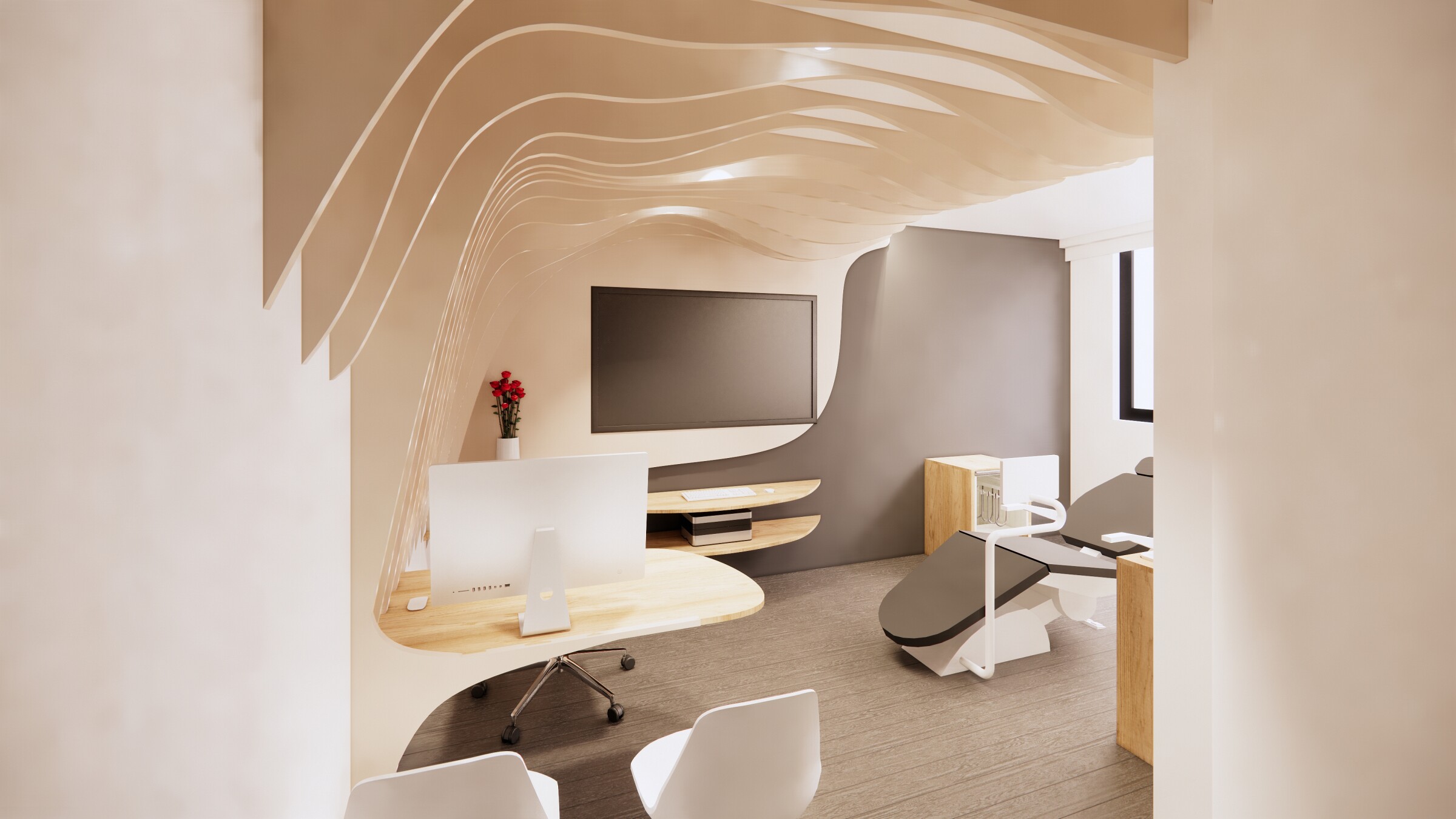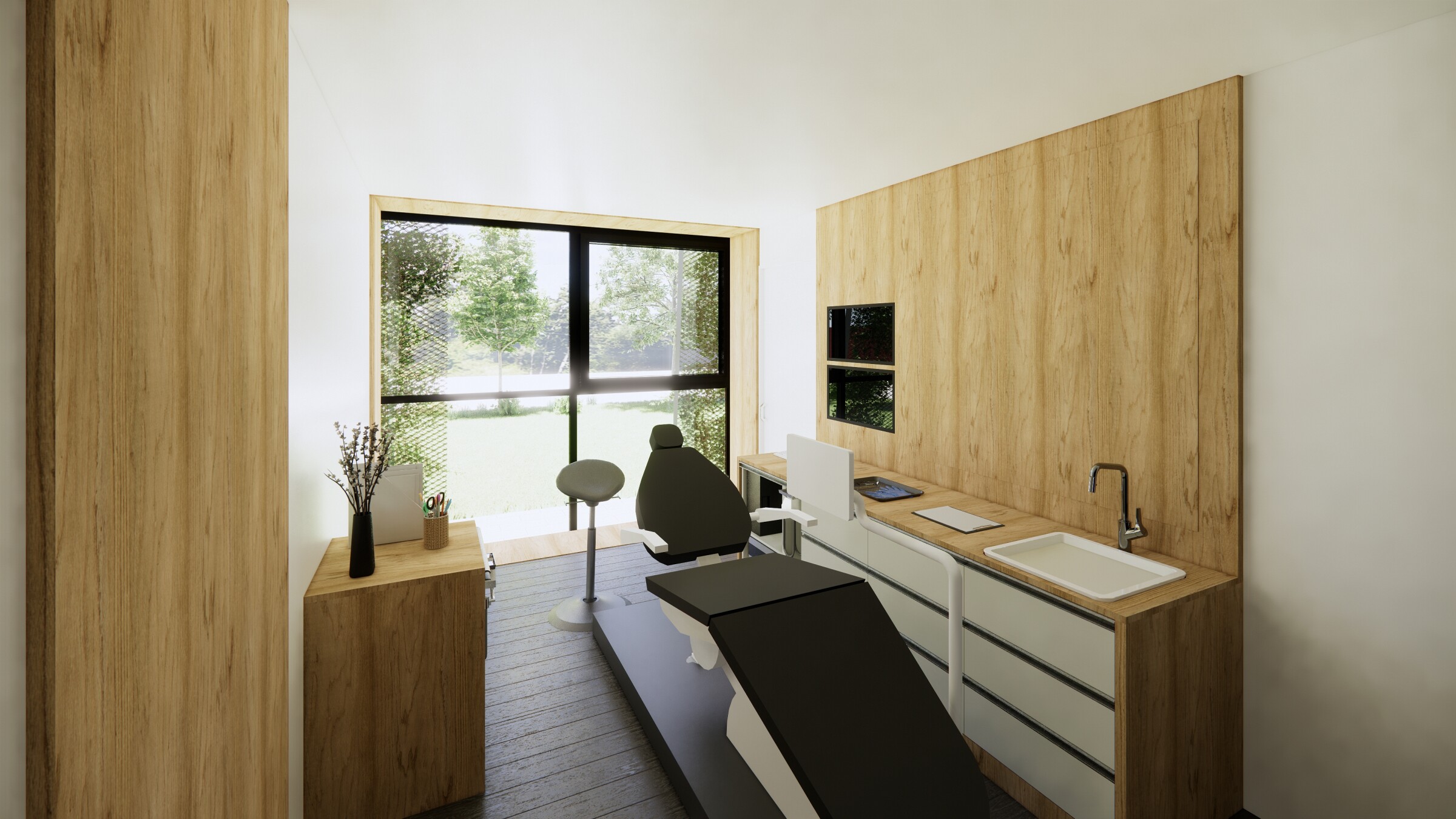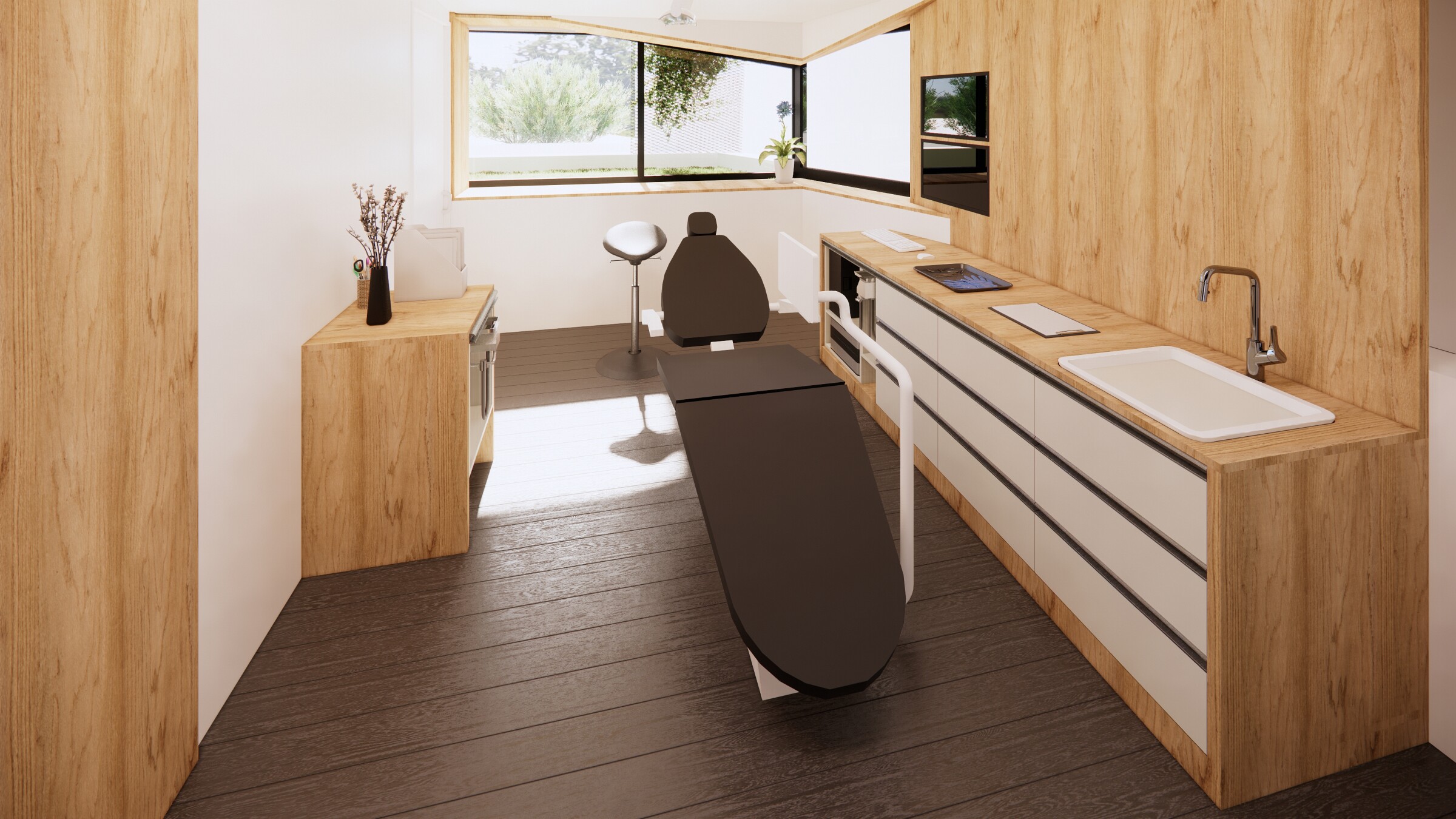 Dans la continuité de la première phase, cette nouvelle intervention vise à sublimer la façade et à réaménager les espaces intérieurs du cabinet. L’objectif : créer un environnement lumineux, chaleureux et apaisant, pensé pour le confort des praticiens comme pour rassurer les jeunes patients notament. Une architecture soignée qui allie fonctionnalité, douceur et bien-être.