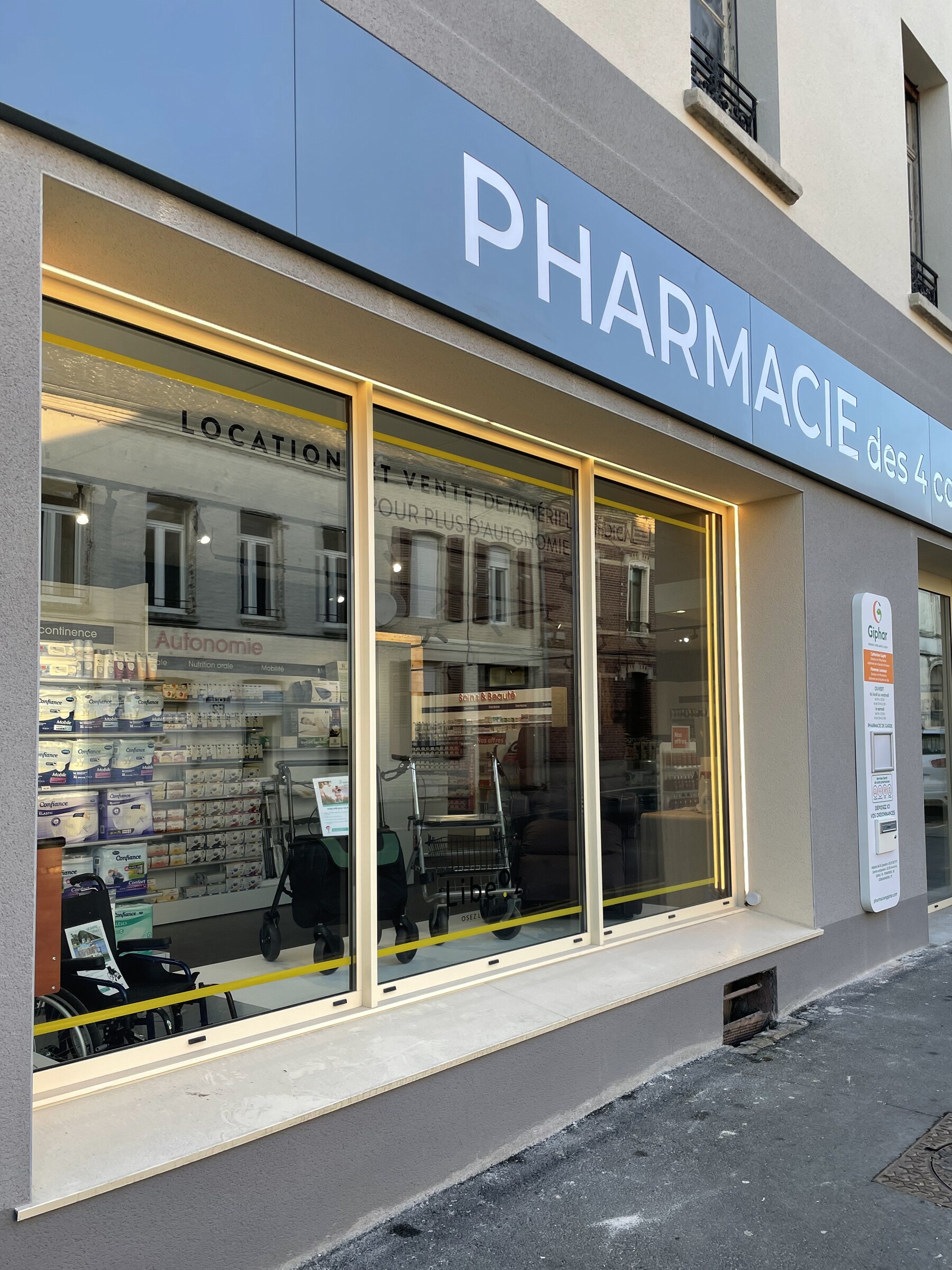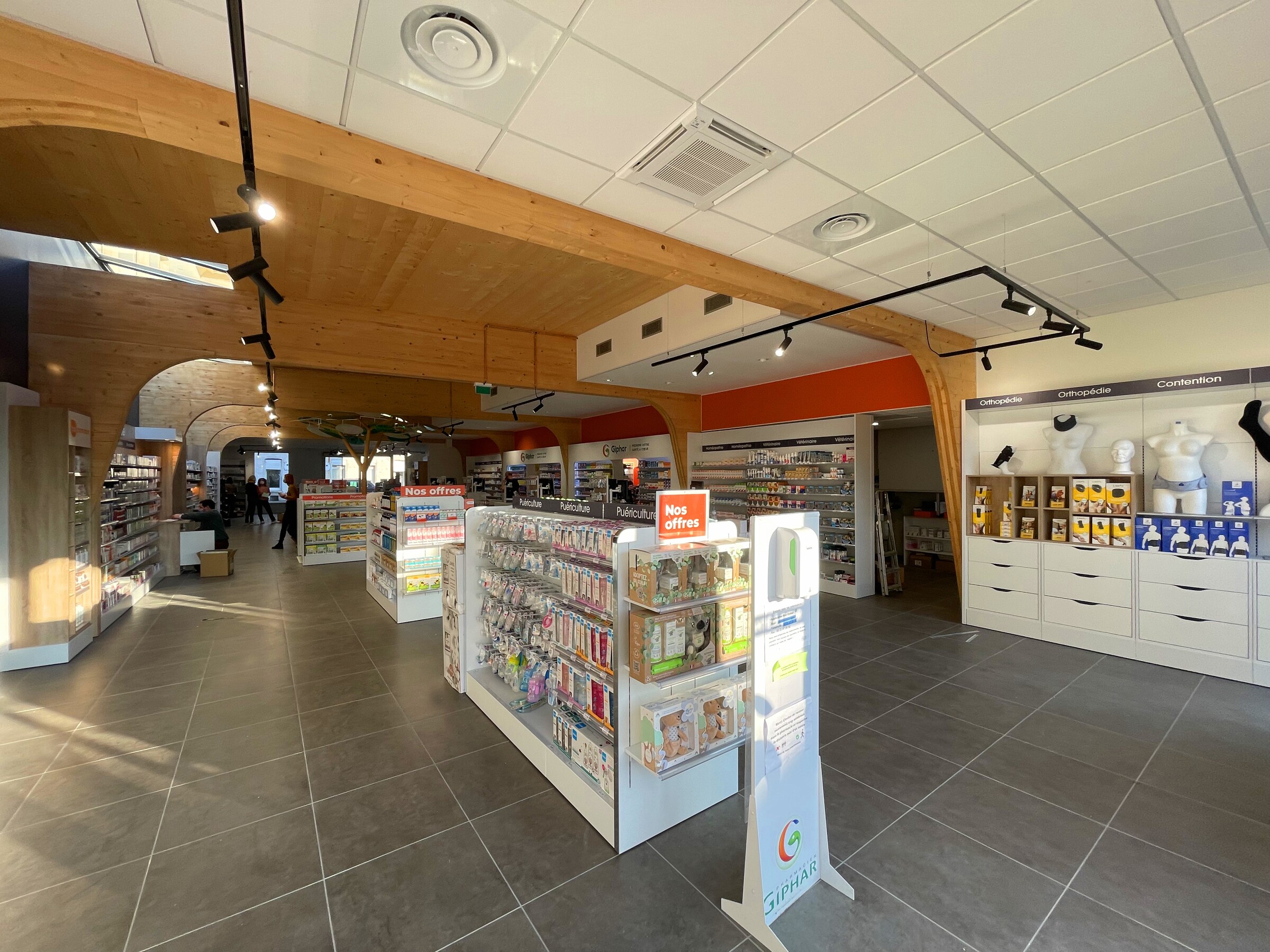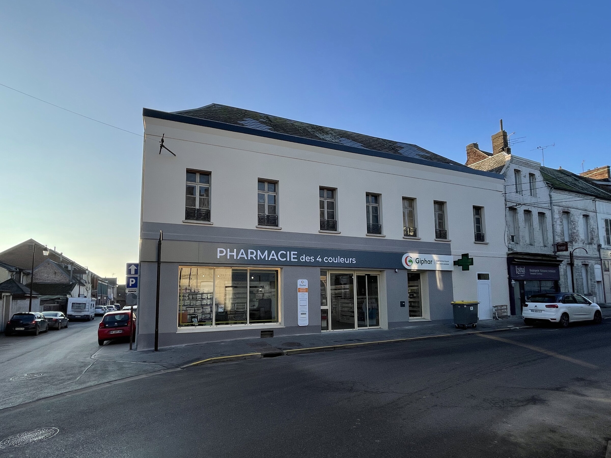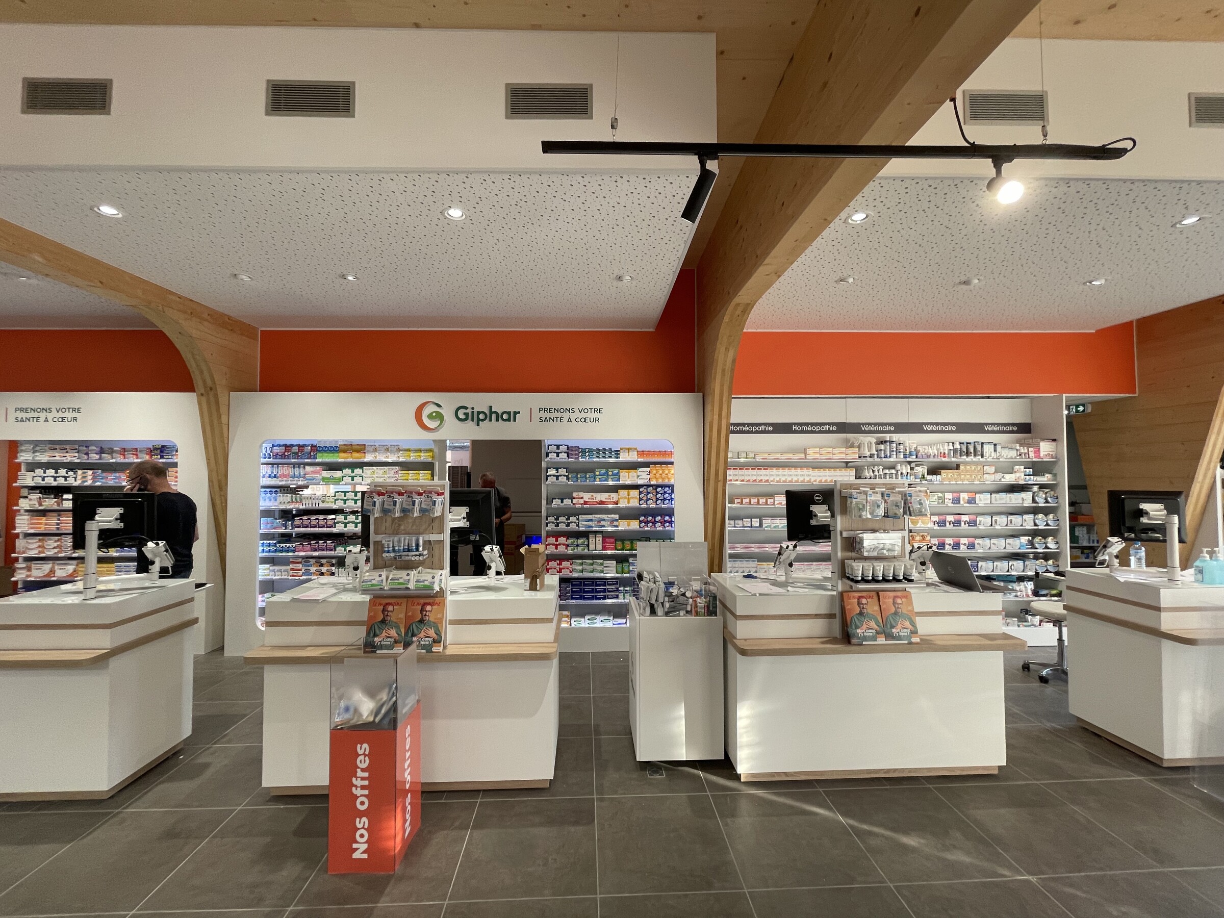 Ce projet consiste en la fusion de deux pharmacies au sein d’une même ville, Bohain en Vermandois (02). Ce projet s’implante dans un bâtiment existant du XXème siècle qui a fait l’objet de plusieurs usages différents au fil des années. La parcelle était parsemée de petites constructions éparses sur la parcelle. La bâtiment principal a été conservé et a fait l’objet d’une rénovation complète, et une extension en bois massif apparent a été créée en prolongement du bâtiment existant. Les portiques structurels en bois apparent donnent un rythme à l’espace