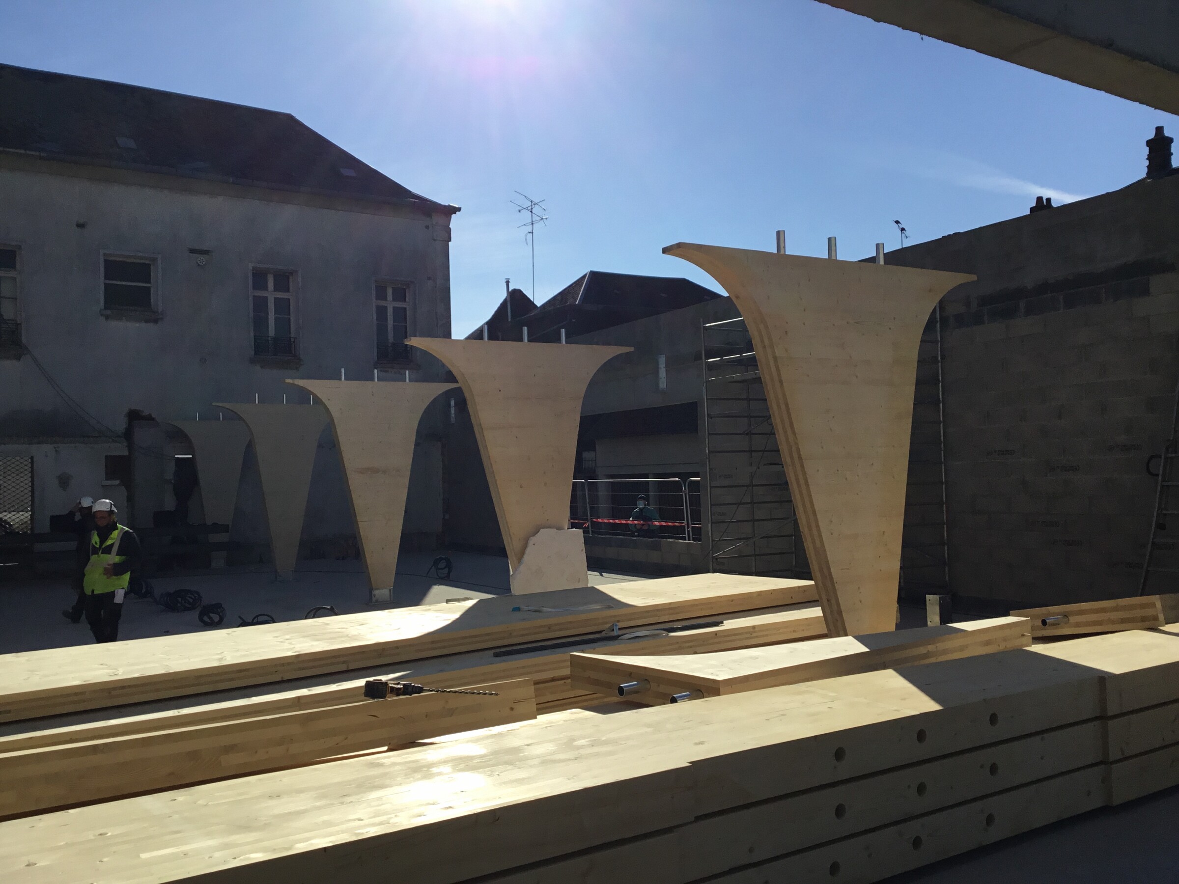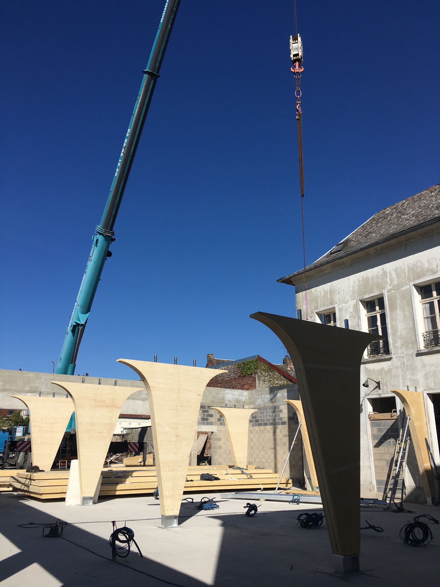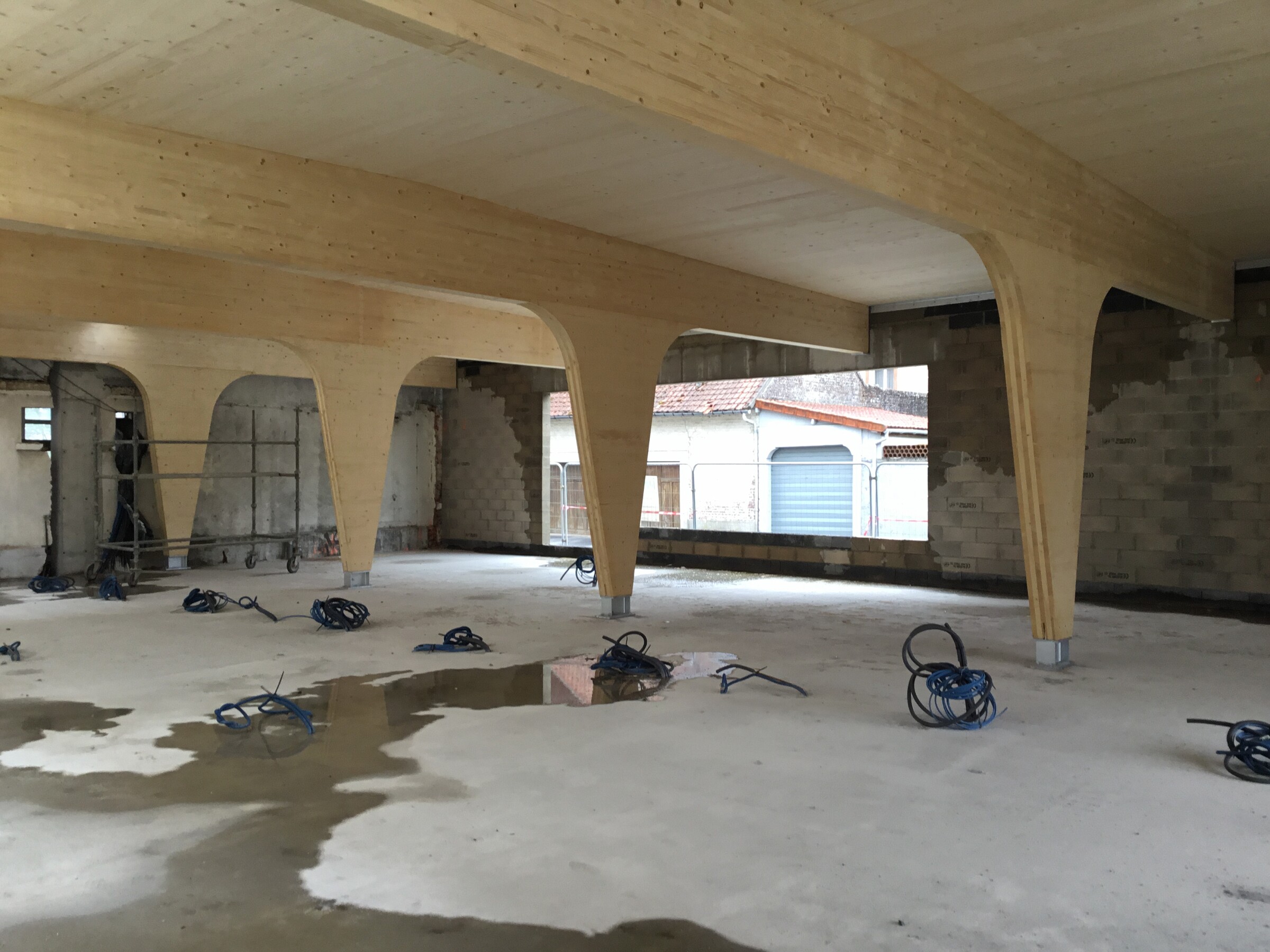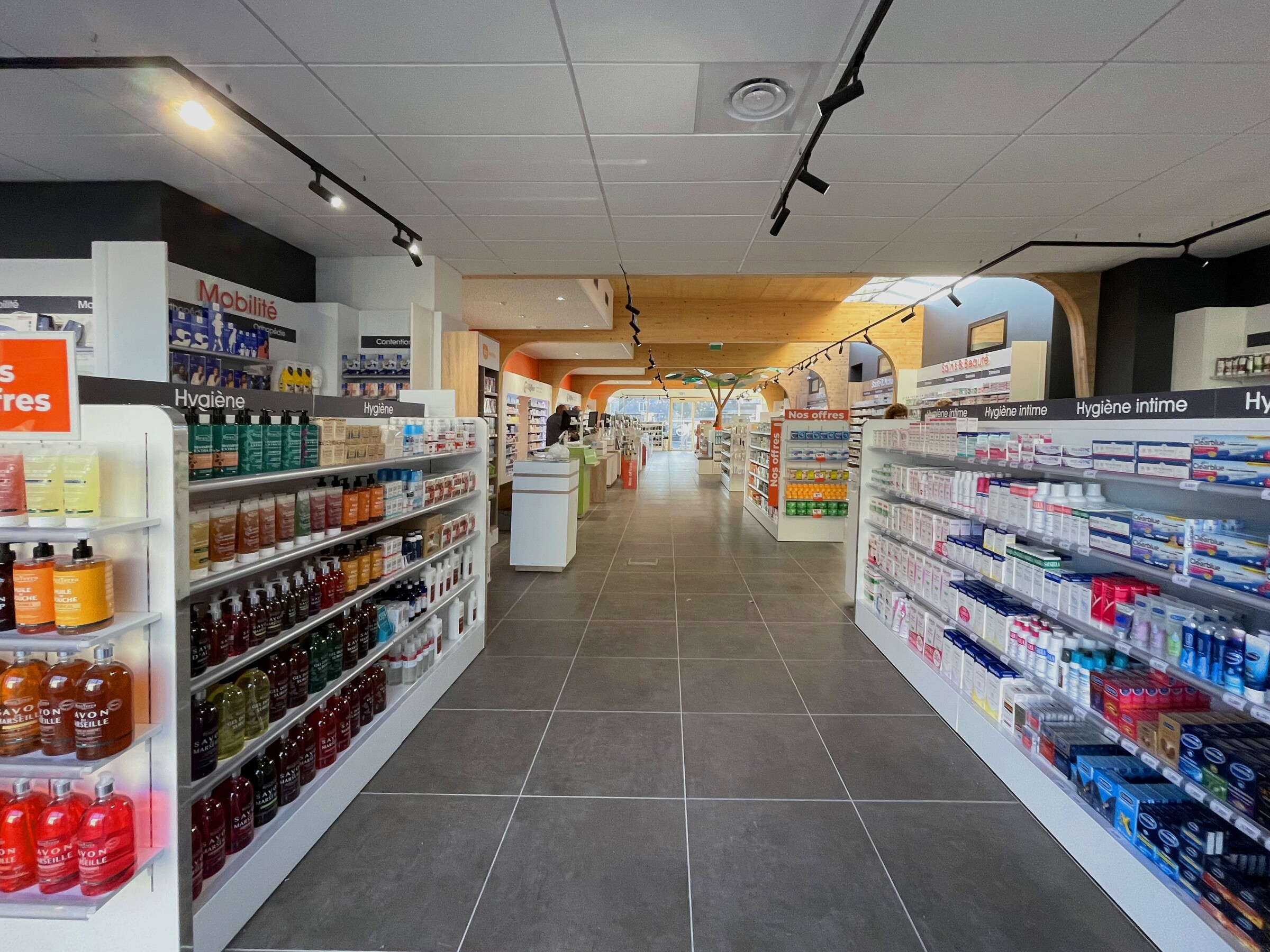 Ce projet consiste en la fusion de deux pharmacies au sein d’une même ville, Bohain en Vermandois (02). Ce projet s’implante dans un bâtiment existant du XXème siècle qui a fait l’objet de plusieurs usages différents au fil des années. La parcelle était parsemée de petites constructions éparses sur la parcelle. La bâtiment principal a été conservé et a fait l’objet d’une rénovation complète, et une extension en bois massif apparent a été créée en prolongement du bâtiment existant. Les portiques structurels en bois apparent donnent un rythme à l’espace