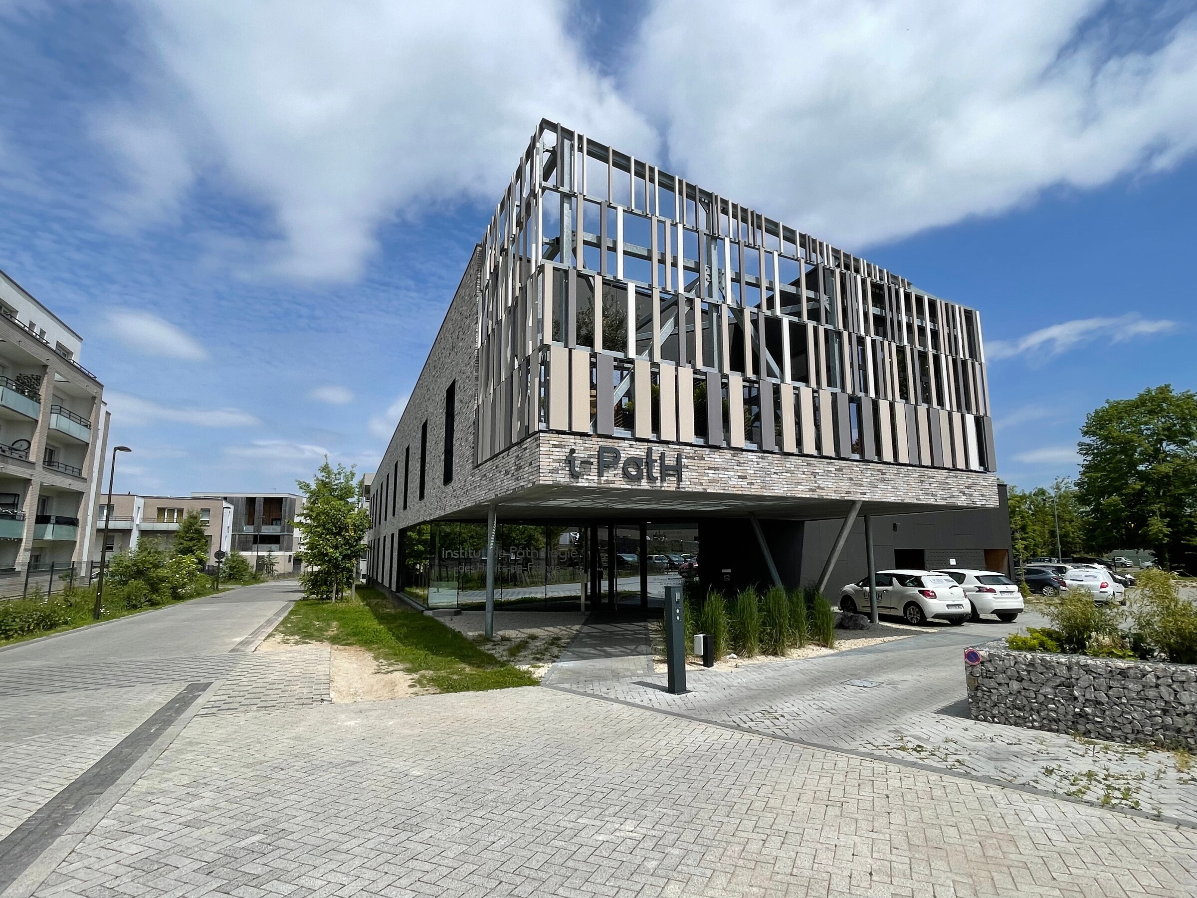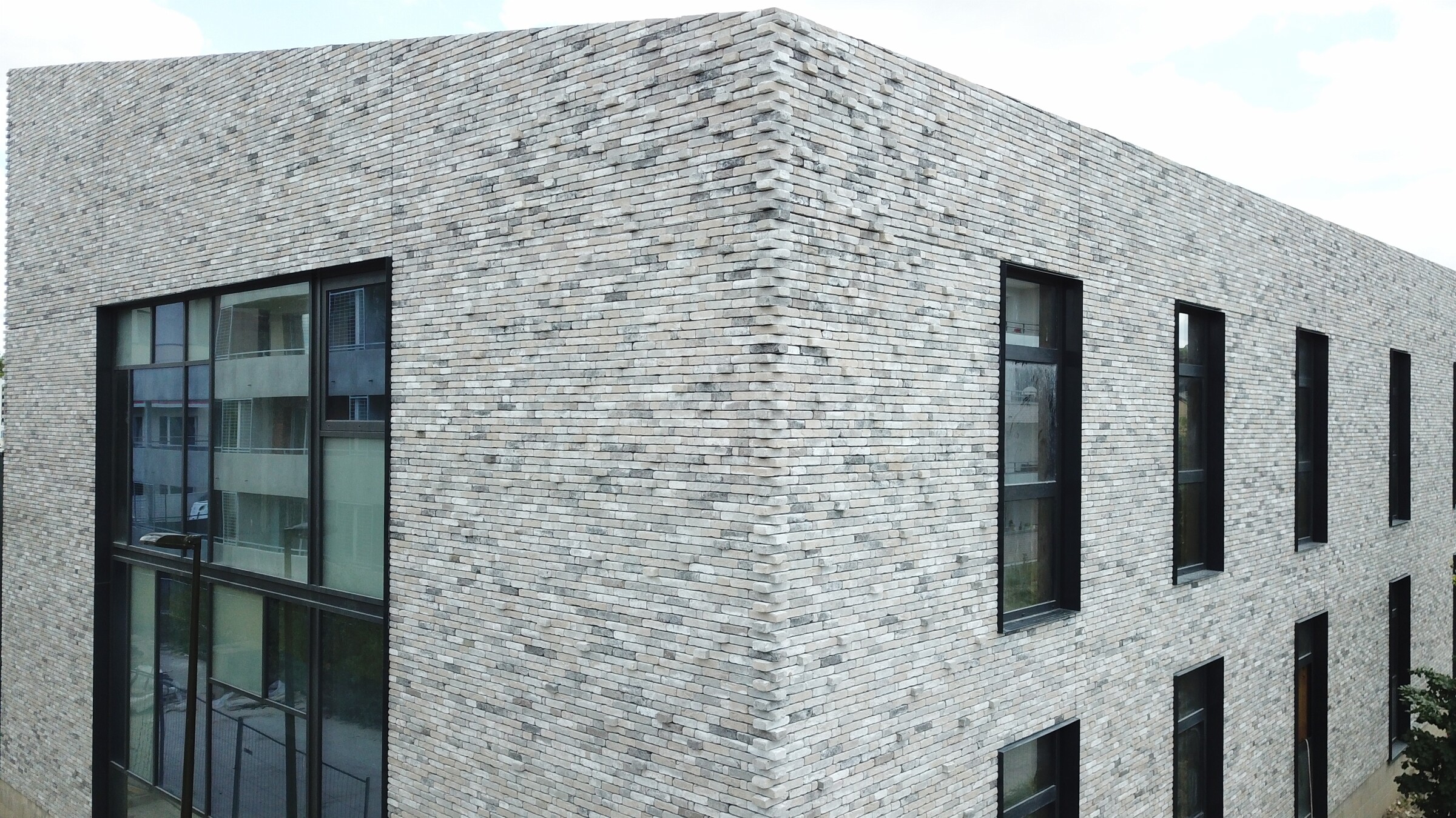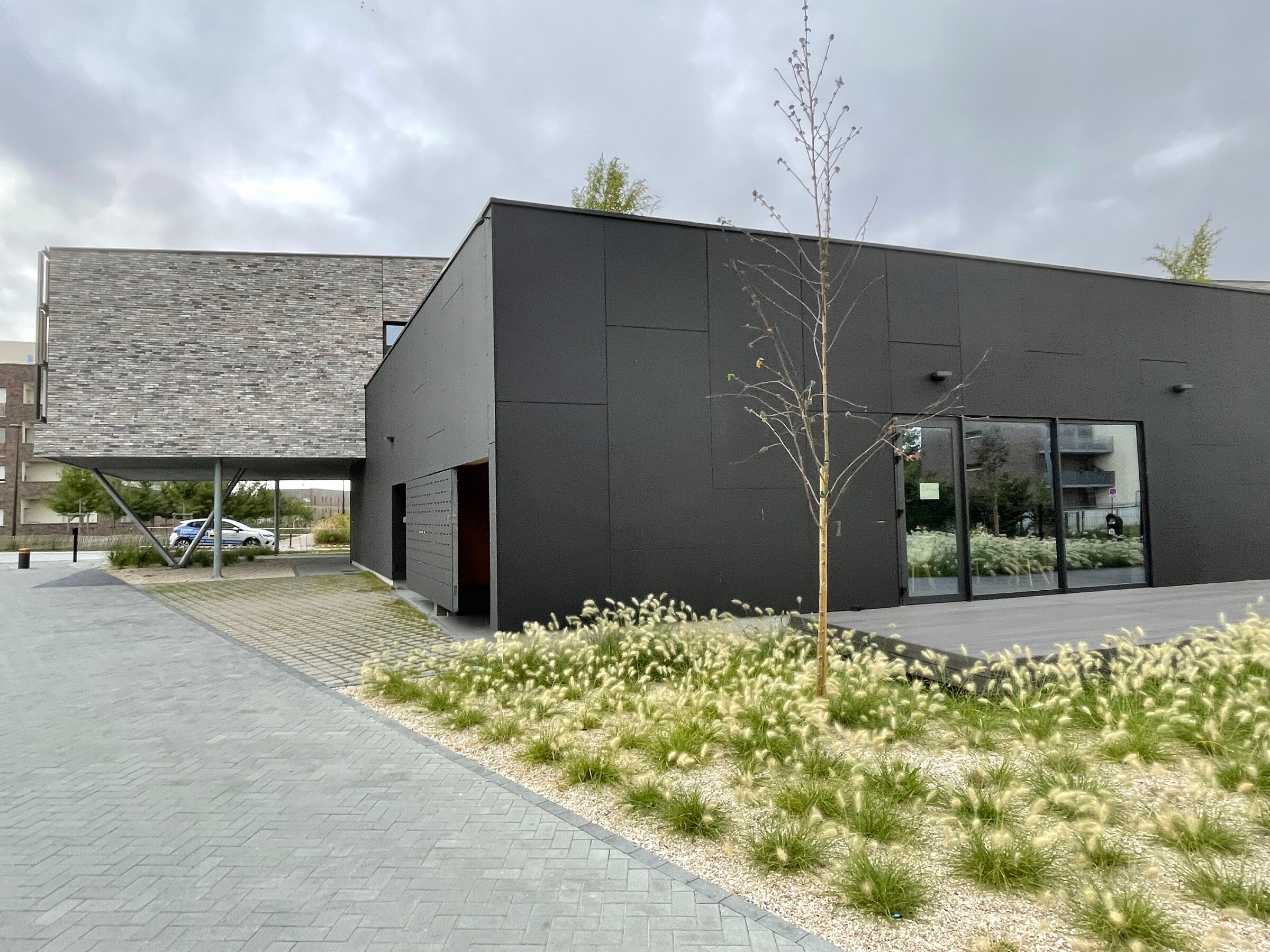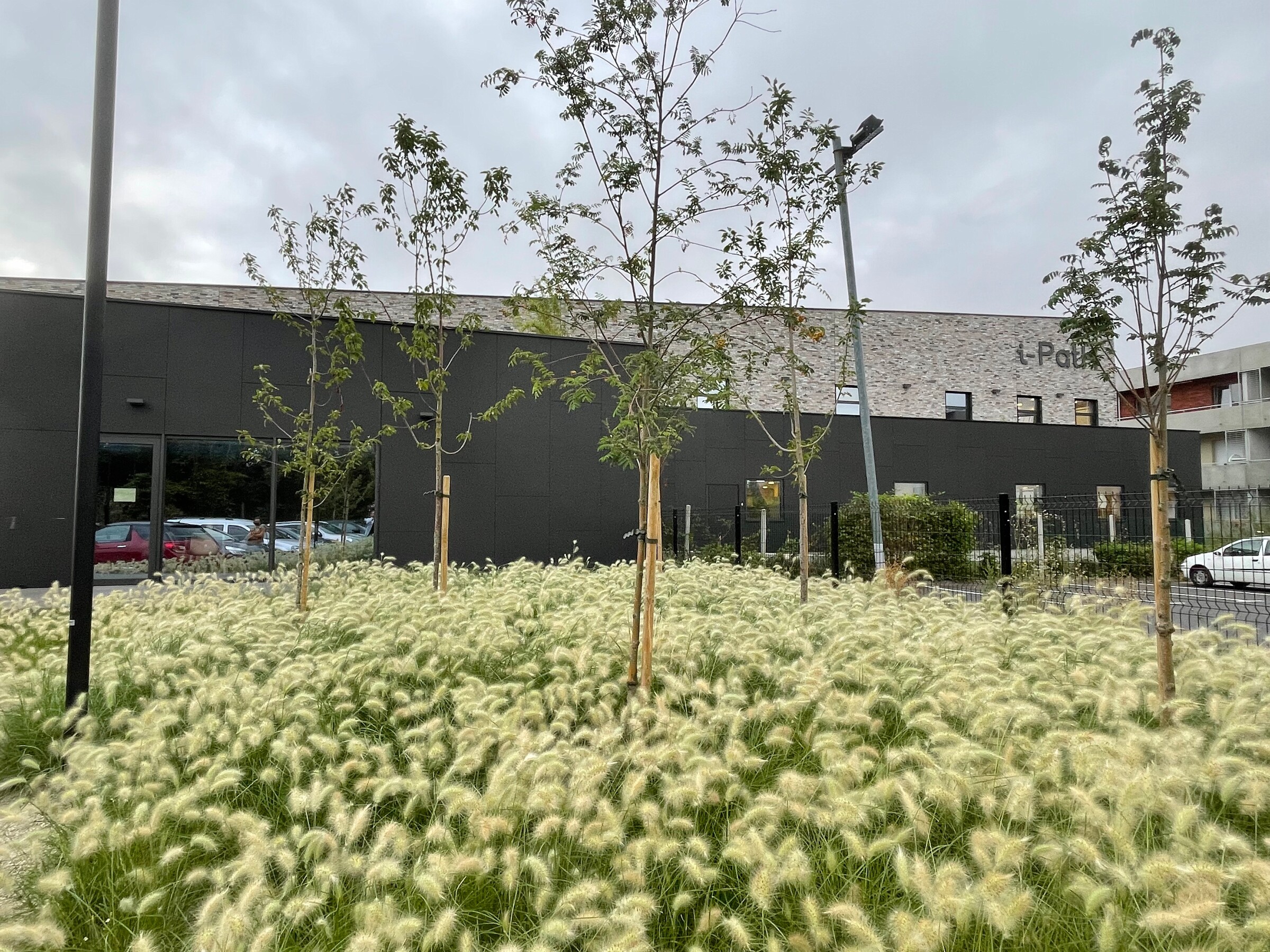 Ce bâtiment contemporain, situé à Amiens, héberge l’Institut de Pathologie des Hauts-de-France. L’architecture se distingue par l’utilisation d’une brique texturée, qui donne une identité forte au projet, combinée à des éléments métalliques fins, notamment sur les façades et le porte-à-faux, qui surplombe l’entrée. L’intégration des ouvertures et des jeux de lumière à travers les balcons et le jardin d’hiver crée un dialogue entre les espaces intérieurs et extérieurs. Le volume global du bâtiment se divise en deux monolithes, renforçant une impression de solidité et de stabilité. À l’arrière, le bâtiment s’étire discrètement pour s’insérer harmonieusement dans le site, tandis que la façade avant capte l’attention avec ses lignes modernes et épurées. Le parking est traité avec des pavés perméables et engazonnés, permettant une intégration paysagère réussie et une continuité avec le quartier environnant. À l’intérieur, le contraste entre la chaleur du bois et les éléments techniques exposés crée une atmosphère à la fois accueillante et fonctionnelle. L’atrium central, baigné de lumière naturelle grâce à une large verrière, devient un point central de circulation et de rencontre. La transparence et les ouvertures sont optimisées, permettant à la lumière d’inonder les espaces tout en favorisant une ventilation naturelle. Chaque détail a été soigneusement pensé pour offrir aux usagers un confort maximal. Les espaces sont conçus avec une attention particulière aux finitions, notamment dans les choix de mobilier sur mesure et d’aménagements intégrés. L’ensemble du projet reflète une conception durable, aussi bien dans le choix des matériaux que dans les solutions énergétiques mises en œuvre, favorisant ainsi une approche responsable de l’architecture.