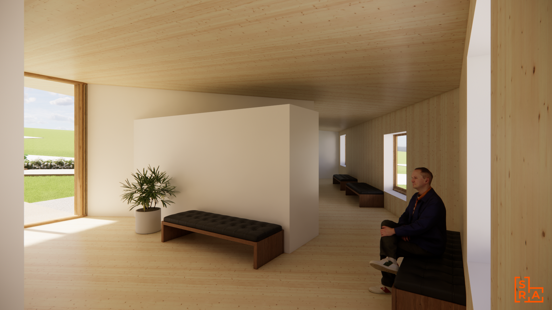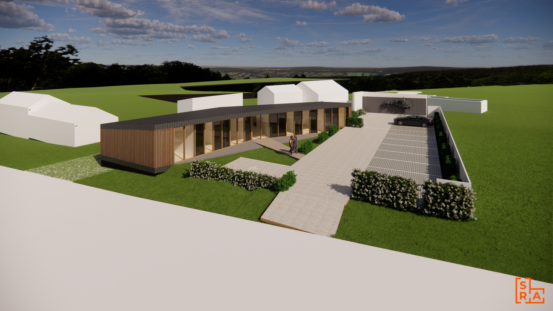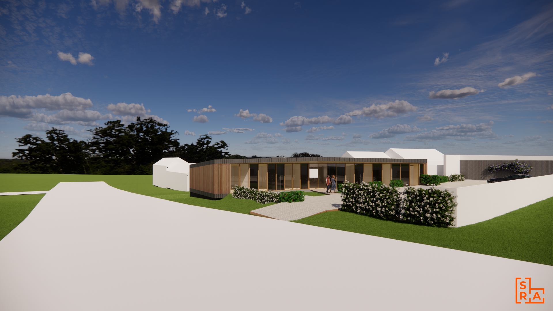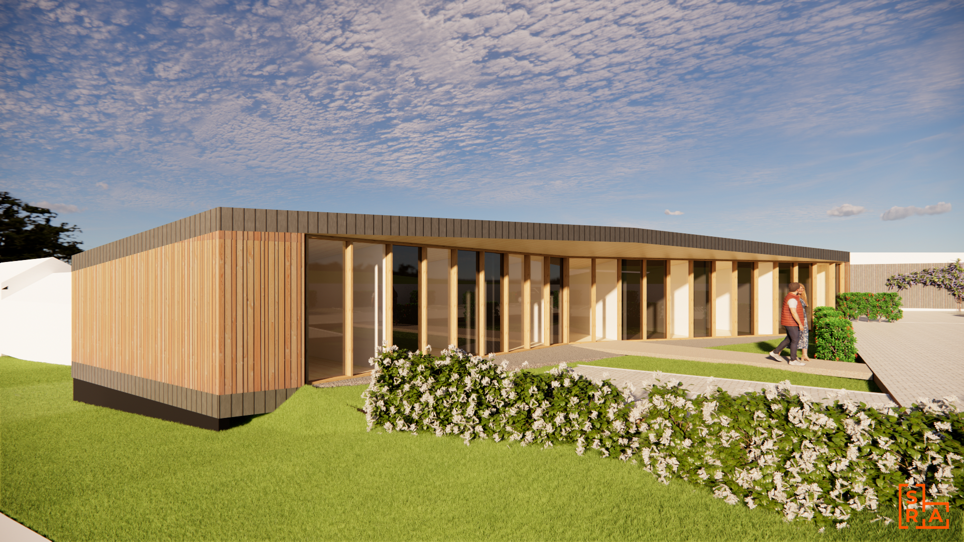 Implantée sur un terrain en pente aux limites complexes, cette maison médicale tire parti de sa situation en angle, à la rencontre de deux rues dont l’une particulièrement passante. Cette position stratégique lui confère une visibilité forte, perceptible aussi bien à la montée qu’à la descente, affirmant sa présence dans le paysage urbain.Inséré dans un tissu pavillonnaire, le projet a été conçu pour dialoguer avec son environnement tout en apportant une écriture contemporaine apaisée. Le bâtiment se veut rassurant et accueillant, offrant des espaces lumineux largement ouverts sur le paysage.L’architecture privilégie des volumes simples et lisibles, accompagnés de matériaux chaleureux, afin de créer une atmosphère à la fois cosy et professionnelle. La lumière naturelle, omniprésente, participe pleinement au confort des usagers et à la qualité des espaces de soins.