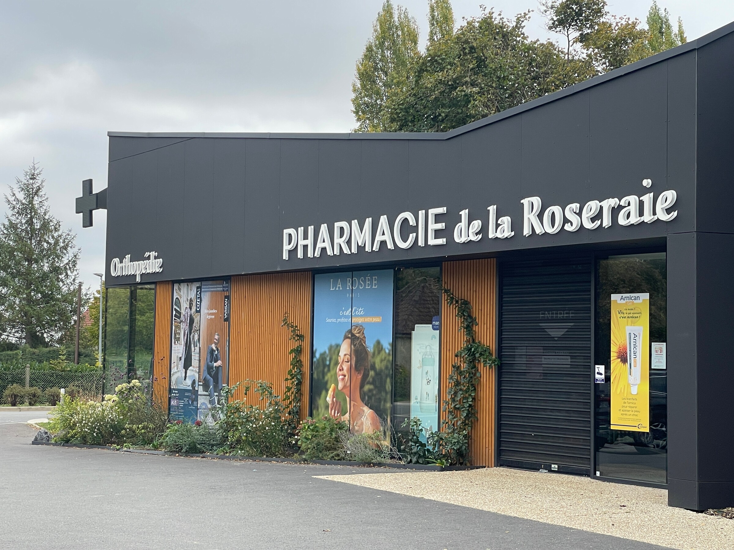 L'idée principale de cette rénovation était de faire oublier l'ancien pavillon par des transformations architecturales ambitieuses. Le bâtiment d'origine, daté et inadapté, a été entièrement repensé pour accueillir une pharmacie moderne, où l'on peine désormais à deviner les contours du bâtiment d'origine.