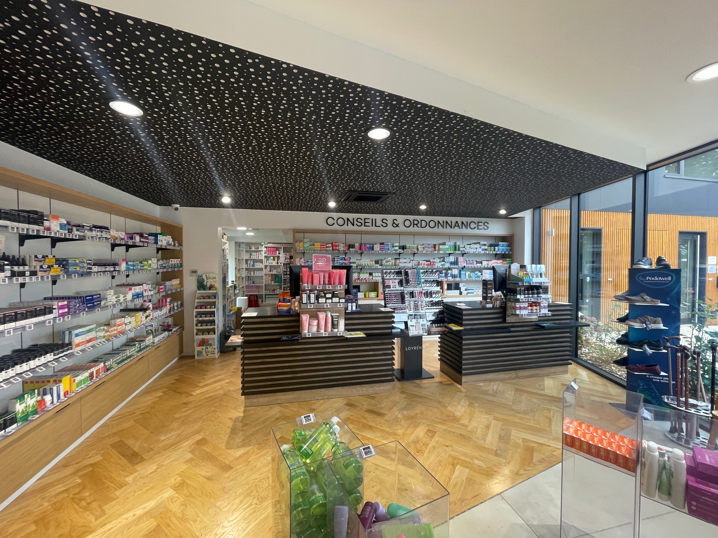 Le projet ne se contente pas d'une transformation esthétique. Chaque espace a été conçu pour répondre aux exigences strictes de l'activité de pharmacie, avec des zones de stockage optimisées, des espaces de confidentialité, et une circulation pensée pour faciliter le quotidien des professionnels de santé. En minimisant les interventions structurelles sur l’existant, nous avons également maximisé l'efficacité économique et environnementale du projet..