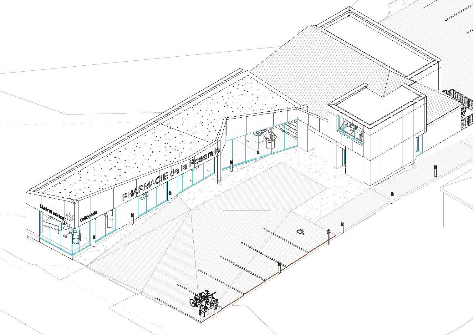 Pour ce projet, l'objectif était de transformer un ancien pavillon en une pharmacie moderne et fonctionnelle, tout en minimisant l'empreinte environnementale.